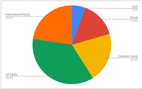- 5% cash, held in savings-like ETFs.