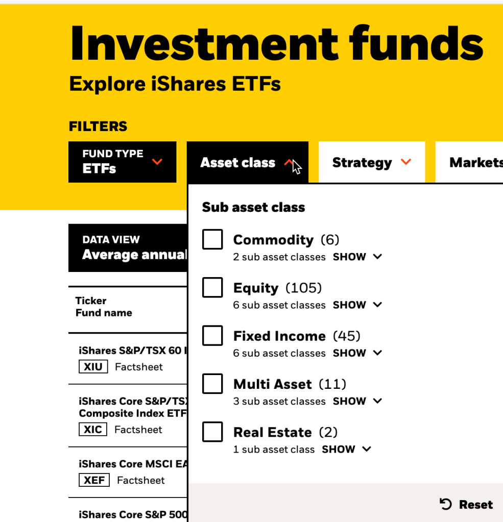 - The Multi-Asset category contains funds that are a mix of Equity and Fixed Income, with the exact ratios depending on which specific fund you buy. This category contains funds I invest heavily in, namely XGRO and XEQT. I cover “all-in-one” funds like this in this article. Multi-asset funds basically take all the work of trying to balance your Equity and Bond percentages out of your hands for a very low price.