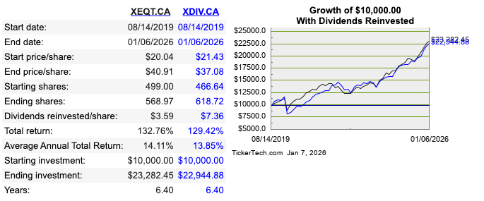 But is that really a good comparison? XEQT and XDIV are pretty different: