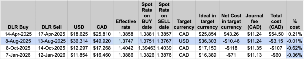 As someone who holds more USD-denominated assets than might be wise, I do very much appreciate the existence of a cheapskate way of converting between USD and CAD assets. I think I first learned about this trick via The Loonie Doctor’s blog. The #3 blog entry explains how it works if Questrade is your broker. I would also recommend https://moneyengineer.ca/2025/08/21/tracking-norberts-gambit-costs-with-questrade/ for a very clear picture of what it actually costs (in time and fees) to execute the Gambit: in three of four instances, the time delay of executing the gambit has worked in my favor as the FX rate has drifted a bit to my advantage.