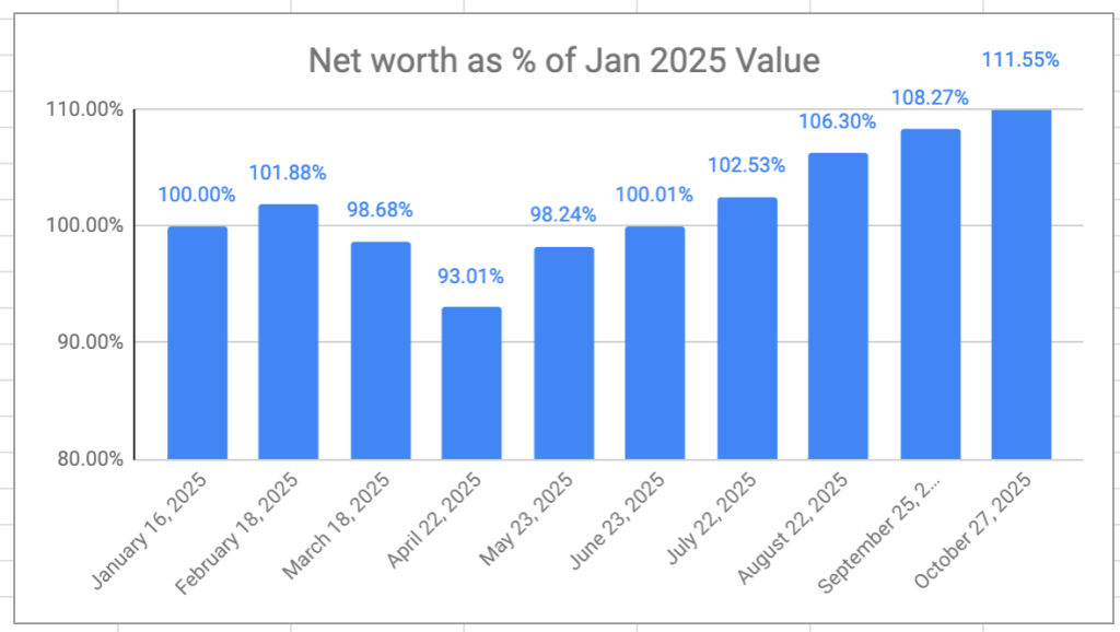 Net worth overall is down slightly month over month, but up a little over 10% from the start of the year. Hard to be unhappy about that.