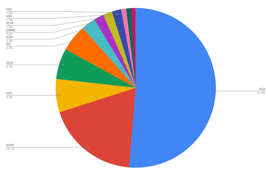 - Q3 dividends will flow in to the account which will make for some movement, especially in XGRO and AOA. (Payout date for XGRO is September 29th , AOA is estimated to be October 8th.