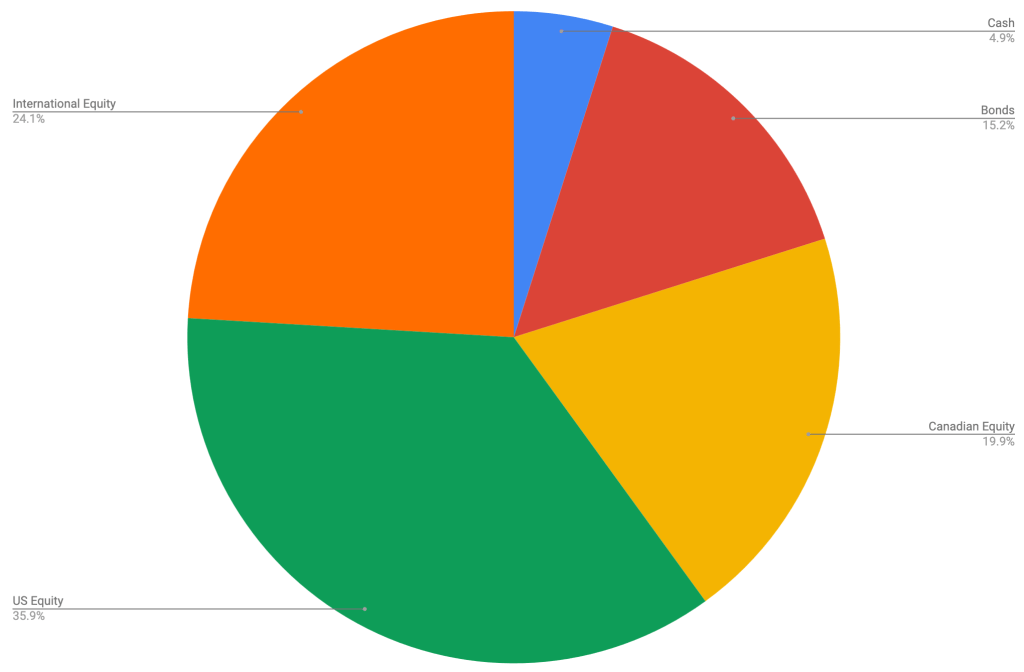 - 80% equity, spread across Canadian, US and global markets for maximum diversification