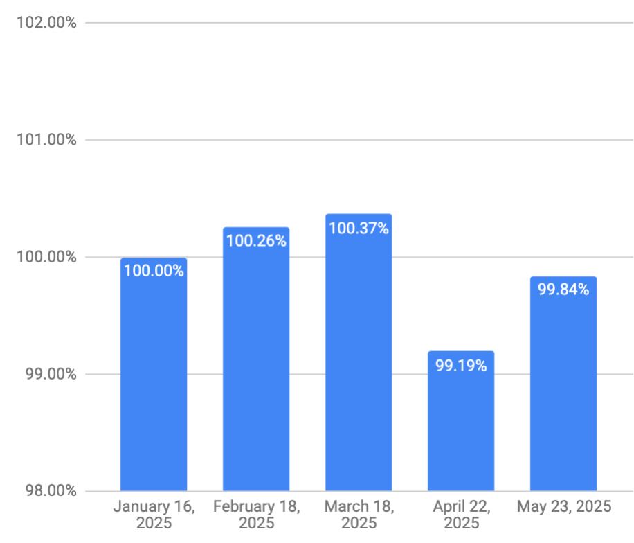 Monthly salary, as percentage of Jan 2025 salary